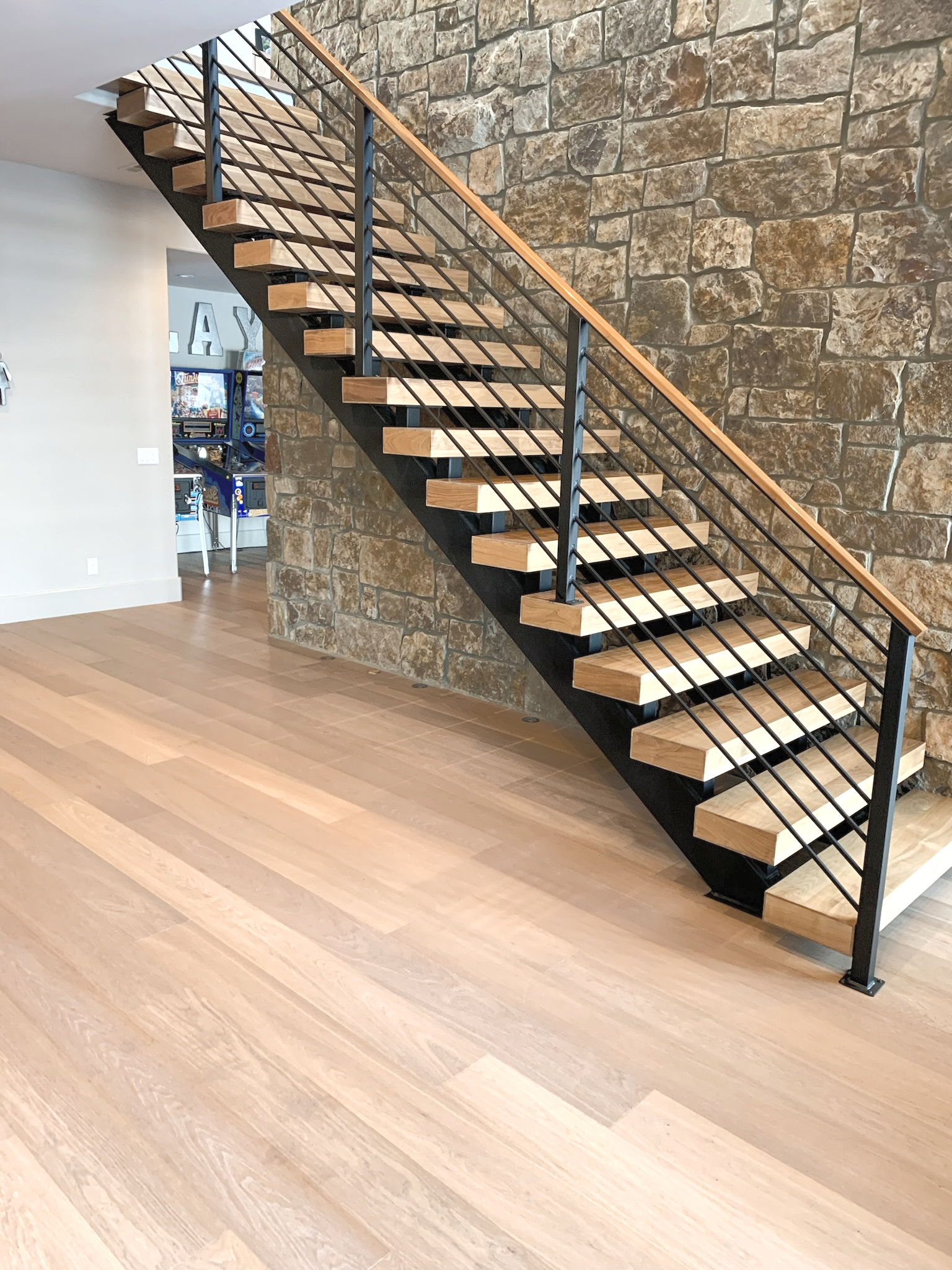 Stairs are often treated as purely functional. We see them differently — transforming this essential structure into a visual anchor and a show-stopping element that completes the space.